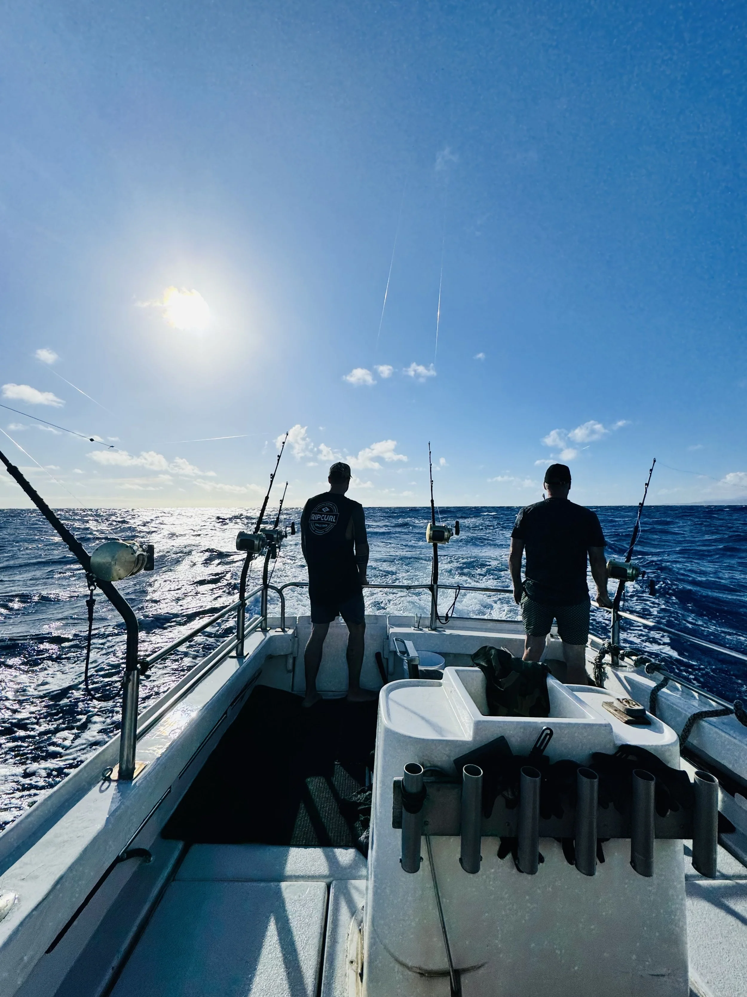 Hawaii state laws prevent us from selling cut fish. Therefore, we do not cut any fish larger than 50 pounds. We will give you the anglers as many fish as we need to make the total weight. This weight is dependent on the length of the charter which is listed below. The rest of the catch will go to auction. We operate at the lowest possible cost and require fish sales to motivate the crew and to purchase new gear. If we don’t catch fish we don’t make money. We are happy to cut your portion of the catch at the dock at the end of the charter. Whole fish will yield about half their weight once they are cut. We offer you the thrill of fishing the North Shore as we do. We don’t do boat rides. Every day we try to put the boat on the best fishing possible and the biggest fish on the line.